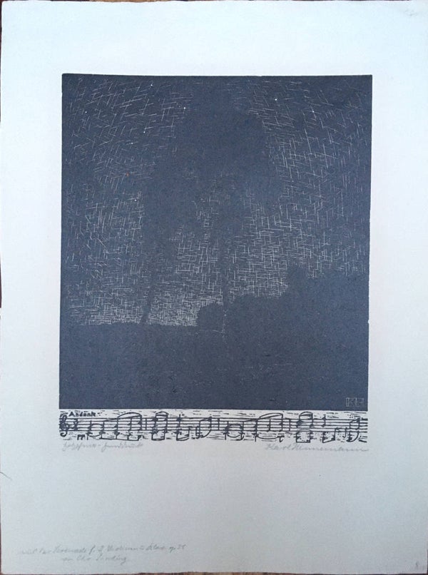 Karl Hennemann Houtsnede ‘Bomen bij nacht - Serenade Christian Linding’ ~1920 Gesigneerd